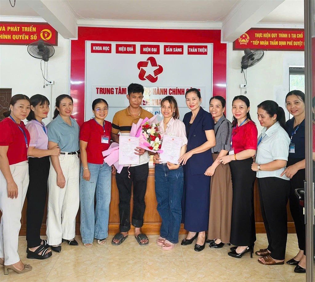 TRAO GIẤY CHỨNG NHẬN KẾT HÔN ĐẦU TIÊN CỦA XÃ YÊN THÀNH